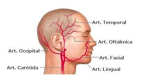 Vamos primeiro apresentar-lhe sua artéria temporal, ramo da artéria carótida externa (seus vasos são como rios, cheios de ramos):