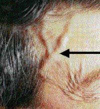 Os vasos em vermelho são as artérias de sua face. A artéria temporal é esta aqui embaixo: